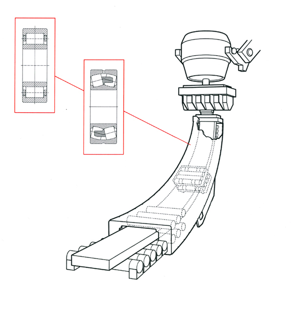 在冶金行業(yè),TWB產(chǎn)品主要應(yīng)用于連鑄機(jī)、熱軋前后及加熱爐的運(yùn)送輥道等。針對(duì)連鑄機(jī)在高溫、重載、重污染的工況條件下連續(xù)工作的應(yīng)用特點(diǎn),TWB開發(fā)了專用于連鑄機(jī)的系列產(chǎn)品,主要應(yīng)用于結(jié)晶器振動(dòng)裝置、扇形段及冷卻段板坯輸送輥道,并已在國(guó)內(nèi)外多家鋼廠的新生產(chǎn)線上成功運(yùn)行。TWB也是鋼鐵生產(chǎn)企業(yè)的日常維修軸承的重要供應(yīng)商,產(chǎn)品廣泛應(yīng)用于齒輪箱、風(fēng)機(jī)及輸送輥道等。